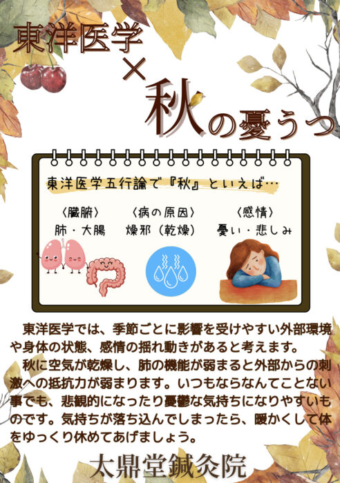 東洋医学では、秋に体が弱ると憂いや悲しみの感情が強くなったり